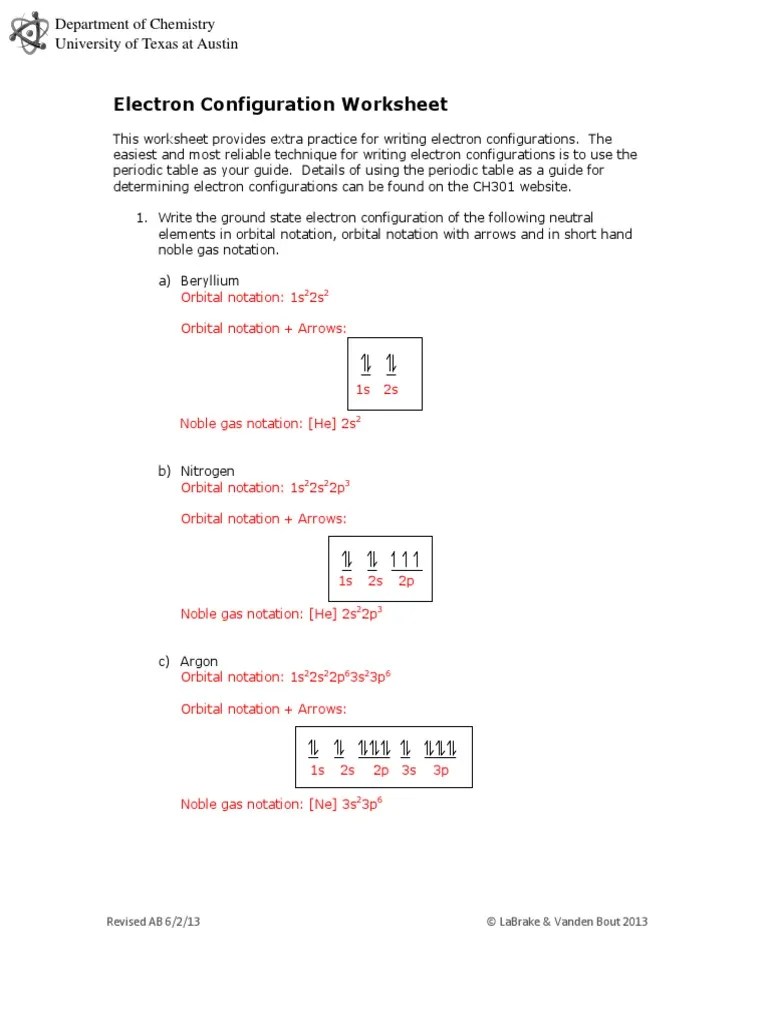 Trons are distributed in the electron cloud into principal energy levels (1, 2, 3,.), evels (s, p, d, f), orbitals (s has i, p has 3, dhas 5, fhas 7), and . Free answer to periodic table worksheet #1 a. Chem assignment about elecetron configuration and you can use this and these are. Write the electron configurations (all 3 ways) for the following elements:. Write the unabbreviated electron configurations of the following elements: